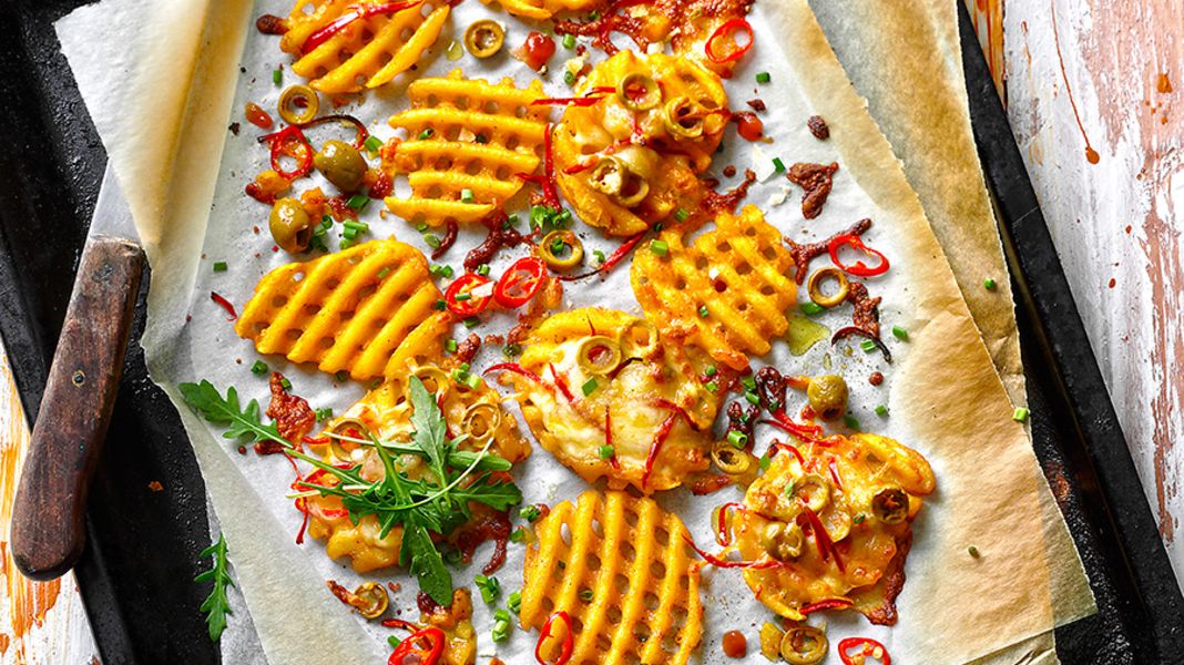 Knapperig geroosterde aardappelwafels met gegratineerde kaas is een heerlijke snack, maar ook een lekker pittig bijgerecht bij bijvoorbeeld een salade. Wij kunnen in ieder geval geen reden bedenken waarom u deze snack niet lekker zou vinden.