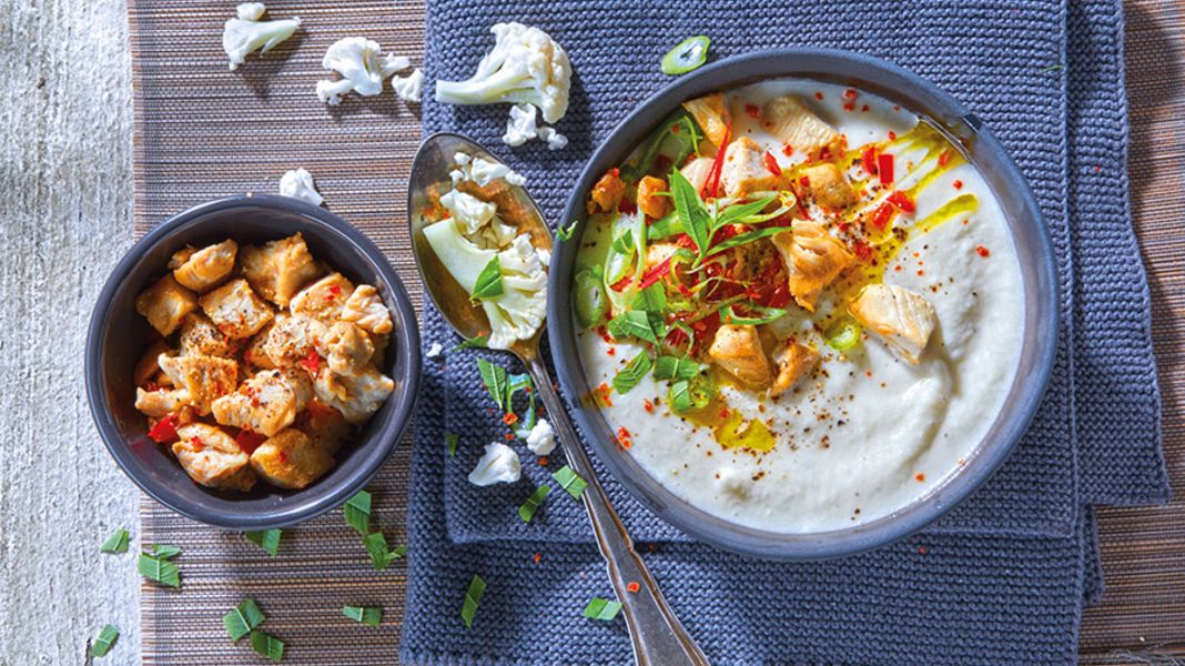 Bereiding Recept: Bloemkool-crèmesoep met kip en chili