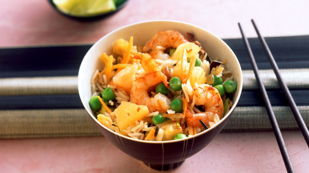 Chinese gebakken rijst smaakt heerlijk en is makkelijk te bereiden. U kunt de ingrediënten naar eigen smaak variëren. Voor nu vindt u een goed voorbeeld van een mogelijk combinatie. Wanneer u geen garnalen mag of niet lekker vindt kunt u het vervangen met kip. Wilt u het exotischer? Voeg dan blokjes mango toe!