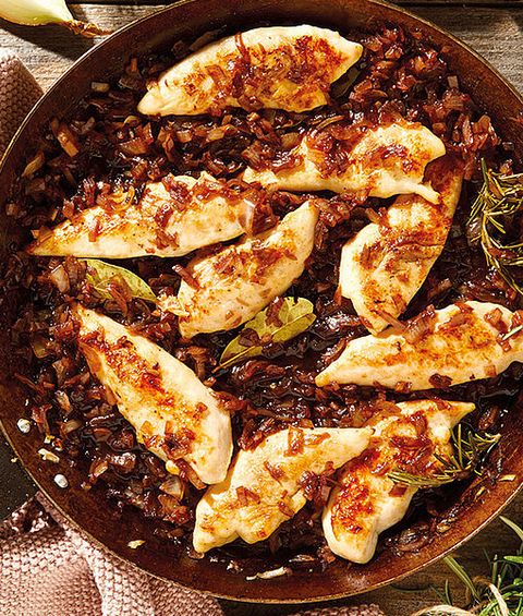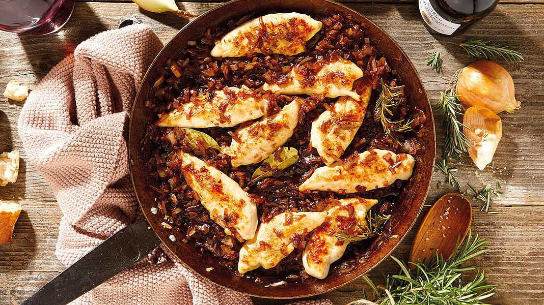 Gemarineerde kipfilethaasjes met balsamico-uitjes - Recept