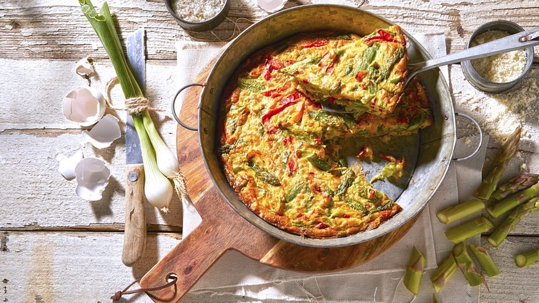 De frittata: een Italiaanse omelet. Of het nu koud of warm is, als voor- of hoofdgerecht, een frittata is altijd een plezier. Meestal wordt een frittata in een pan gebakken waarbij de losgeklopte eieren de basis vormen. De ingrediënten variëren naar smaak. Vis, vlees, groenten... het maakt niet uit, het kan allemaal perfect gecombineerd worden met onze plantaardige frittata.