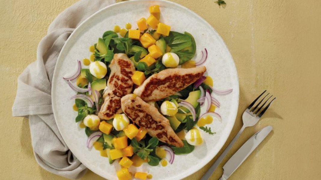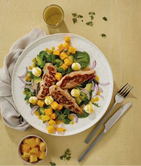 Mango-avocadosalade met kipfilethaasjes - Recept