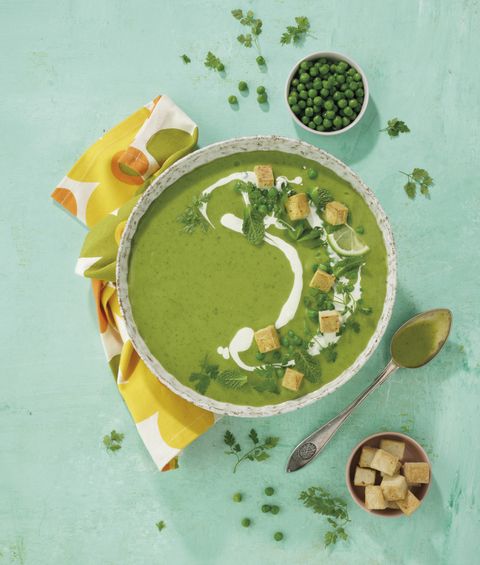 Veganistische "erwtjessoep" met tofu en munt - Recept
